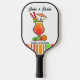 Raquette de pickleball personnalisée pour enterrement de vie de jeune fille avec des pickleballs rouges, verts, oranges et jaunes. Servez une tranche de paradis tropical avec notre invitation de fête d'enterrement de vie de jeune fille de pickleball Dinks and Drinks ! Avec un graphique vibrant d'un cocktail Hurricane orange décoré de pickleballs en forme de tranches de citron vert, de tranches d'orange et de cerises marasquin, cette collection est parfaite pour célébrer le dernier swing de la future mariée avant la bague ou pour rassembler vos amies de pickleball préférées pour un moment formidable. Des invitations accrocheuses aux serviettes, assiettes, gobelets et verres à vin assortis dans des nuances d'orange, de vert citron et de rouge cerise, notre collection contient tout ce dont vous avez besoin pour rendre votre fête d'enterrement de vie de jeune fille inoubliable