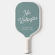 Pagaie de Pickleball Vert moderne avec le nom du conjoint ou des mariés en police de caractères modernes pour un mariage de Pickleball.