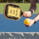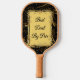 Laissez votre cadeau de Fête des pères - une pagaie de pickleball être aussi unique que sa préférence sportive! La calligraphie dorée moderne sur un arrière - plan noir avec des tourbillons est juste pour votre père sportif. L'illustration présente des tourbillons dorés sur un décor noir. Le TEXTE "Best Dad by Par" au centre a une bordure florale et est personnalisable.