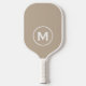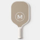 Masculine modern design features beige background with easy to use template for a single letter in stylish classic block typography. The design repeats on the reverse side. Perfect pickleball gift for him.