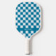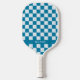 Raquette De Pickleball Modern Blue & White Checkerboard Custom Name