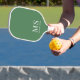 Créez votre propre pagaie personnalisée de pickleball avec des initiales monographiques élégantes et l'arrière - plan motif vert esthétique à damiers