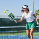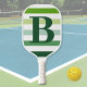 Bandes dans différentes formes de vert. Avec monogramme personnalisé pagaie à bille de pickleball en couleurs fraîches.