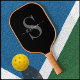 Raquette De Pickleball Monogramme moderne noir et blanc Initiale + Nom