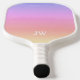 Cette pagaie de pickleball rose et orange pastel a un design foncé dégradé avec un fini blanc. Les couleurs évoquent un coucher de soleil doux. Les initiales du monogramme sont également en blanc et vous pouvez personnaliser la pagaie en les changeant.
