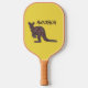 Pickleball paddle caractéristiques kangourou silhouette dans le motif de mosaïque aborigène sur arrière - plan jaune avec "Australie" dans le style grunge texte