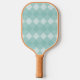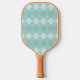 Ajoutez un peu de plaisir à votre jeu de pickleball avec cette pagaie à deux tonalités de diamants bleu aqua motif géométrique de circuit de pickleball.