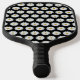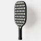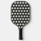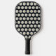 Pagaie de Pickleball qui montre l'image d'une jolie fleur blanche de Daisy avec centre jaune sur un arrière - plan noir et imprimé dans un motif extensible. Un design floral et amusant ! Sélectionnez la couleur de votre poignée de pagaie à pickleball et d'autres options.