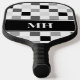 Raquette De Pickleball Noir et blanc moderne À damiers Initiales Monogram