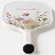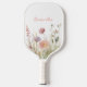 Jolie pagaie à pickleball nom floral rose. Facile à modifier le texte. Design fleur sauvage à l'aquarelle tendance et délicat.