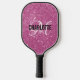 Élégante parties scintillant rose blanc script monogramme noir nom femme pickleball paddle. Personnalisez avec votre nom et votre initiale.