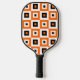 Raquette De Pickleball Orange Black White Checkered Squares Pattern