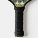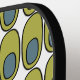 Cette pagaie à pickleball a un design moderne du milieu du siècle de ovales vert olive répétitif avec ovales gris à l'intérieur.
