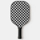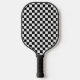 Cette élégante pagaie à pickleball dispose d'un motif en damier en noir et blanc contrastant en gras.