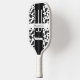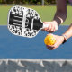 Une pagaie monogramme en noir, blanc et gris avec un arrière - plan d'impression de vache. Vache Imprimer Monogramme Pickleball Paddle Jour férié Conception | ©Melissa Patton - Designer