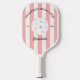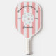 Super fun Pickleball Social Club pagaie personnalisée avec un arrière - plan rayé rose. Tout le texte peut être personnalisé. Ajoutez votre nom d'équipe et votre nom ou surnom et établi dans l'année. Des rayures de cabane preppy de l'arrière - plan avec un pickleball blanc au centre. Laissez votre pagaie refléter votre personnalité sur la cour. Que vous diniez avec finesse ou que vous dominiez le filet, cette pagaie allie performance et flair indéniable pour les amateurs de pickleball élégant. Toutes les couleurs peuvent être customisées dans l'outil de conception.