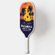 Une pagaie de pickleball super amusante avec un "soleil de pickleball" entouré d'un palmier et des vagues bleues de l'océan. Ajoutez 3 lignes de texte personnalisé - nom du club, emplacement, nom du joueur, numéro de téléphone, etc. Ou supprimer et juste avoir le graphique. Fait un cadeau parfait pour tous les joueurs de pickleball - papas, mamans, amis, enfants, grands-parents, partenaires de pickleball, entraîneurs, membres du club de pickleball - tant les débutants que les joueurs expérimentés sont sûrs d'aimer cette pagaie d'une gentillesse.