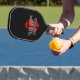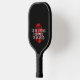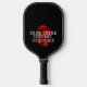 Pickleball paddle pour ceux qui aiment aussi les vrais podcasts de crime! Arrière - plan noir avec une empreinte sanglante et de type machine à écrire "True Crime Podcast Obsédé" texte.