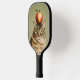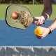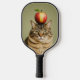 Chatte drôle avec une pomme équilibrant sur le dessus de sa tête.