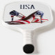 Des chaussures à talons hauts au design inspiré du drapeau américain sont positionnées contre un arrière - plan blanc clair