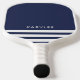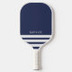 Paddle de pickleball à rayures bleues de marine modernes personnalisé avec votre nom.
