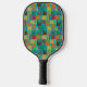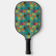 Cette pagaie à pickleball a un design moderne du milieu du siècle de rectangles arrondis, en or, orange, marron, rouge profond et turquoise foncé, avec des trous et de fines lignes blanches sur le dessus, "interrompant" les rectangles. Si vous aimez le design mais préférez différentes couleurs, envoyez-moi un message.
