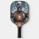 A humanoid robot is seated at a workbench surrounded by tools and intricate components. The setting is futuristic with digital screens in the background.