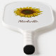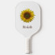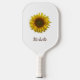 Boho rustic botanical Yellow Sunflower bloom pickleball paddle, with customizable script typography. Enjoy this personalized item for your favorite game.