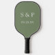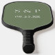 Sage Green Mariage Pickleball Paddle, s'il vous plaît personnaliser avec les initiales du couple et la date du mariage, en utilisant le modèle de personnalisation en ligne avant de commander. Le texte se copie automatiquement de l'autre côté de la pagaie pour afficher les mêmes initiales et la même date de chaque côté. Une pagaie de pickleball élégante avec un texte blanc élégant sur une belle couleur verte sauge. Grand comme un cadeau mariage ou comme une faveur pour quelqu'un spécial et aussi un moyen de s'impliquer avec des jeux extérieurs à un mariage de destination / célébration mariage.