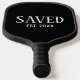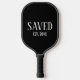 Minimal Saved Established Christian Pickleball Paddle with CUSTOMIZABLE YEAR and classic white caps serif font. Perfect gift for Christians of all ages, and especially during Easter or for a newly saved pickleball player. Add the year you got saved. You can also add your monogram initials underneath. Contact me if you're a church or faith-based group and would like extra branding with your logo. Ideal personalized unisex Christian Saved Pickleball Paddle for all ages. Matching gifts available. Also in white.