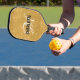 Parties scintillant or élégant en blanc script monogramme noir nom femme pickleball paddle. Personnalisez avec votre nom et votre initiale.