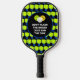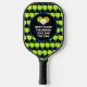 Fun JUST SINK THE DINK customizable pickleball paddle pour les hommes, les femmes et les enfants qui aiment jouer au pickleball. Le dessin montre un motif arrière - plan de pagaies vert citron, et à l'intérieur du cercle le libellé dit NE PAS FLASH LE SMASH JUSTE SINK THE DINK. Ce texte est PERSONNALISABLE pour que vous puissiez le remplacer par votre choix, par exemple votre nom, nom de l'équipe, devise, etc. Cette pagaie de pickleball est conçue pour les mamans, les papas et les enfants qui aiment jouer en équipe de pickleball. Achetez des pagaies assorties pour chaque personne de votre équipe ou de votre famille. Choisissez parmi une large sélection de modèles de pickleball et de cadeaux de Berean Designs.