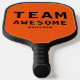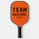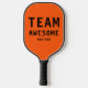 Team Awesome Funny Sports Simple Typographie Nom Pickleball Paddle contient le texte "Team Awesome" avec votre nom personnalisé ci-dessous sur un arrière - plan orange. Personnalisez en modifiant le texte dans les zones de texte fournies. Cadeaux parfaits pour Noël, anniversaire, fête des mères, Fête des pères et plus encore. Conçu par ©Evco Studio www.zazzle.com/store/evcostudio