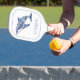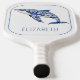 Cette pagaie de pickleball d'inspiration côtière bleue et blanche dispose d'un dauphin de toile floral et peut être personnalisée avec votre choix de nom ou texte spécial. Cadeaux personnalisés amusants pour sacs cadeaux de plage.
