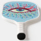 Pagaie psychédélique à bille à oeil avec une illustration colorée d'un oeil bleu bizarre avec de gros cils rose cailloutés, des larmes bleu clair coulant partout et de nombreux éléments rose et vert - extensions des cils.