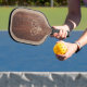 This pickleball paddle is a stunning fusion of high-performance engineering and artistic illusion. Its sleek, lightweight frame is elevated by a masterful trompe l'œil wood marquetry design, giving the impression of rich, hand-carved wood. At the heart of the paddle face, two miniature paddles appear to be delicately carved into the surface: an illusion so convincing it invites a second glance. Inside each of these faux-carved paddles, players can personalize their initials, transforming the paddle into a truly bespoke piece of gear. The natural wood grain effect adds warmth and sophistication, making this paddle not just a tool for the court, but a statement of style and identity. It’s both designed to perform, and admired for its artistry.