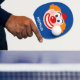Amusante pagaie de ping-pong clown pour ping-pong. Paddle de ping-pong personnalisé pour ping-pong. Une idée cadeau de jeu sportif pour les enfants. Couleur arrière - plan personnalisée. Dessin mime mignon avec casquette rouge et cheveux orange.