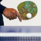 Raquette De Ping Pong Aqua et Fleurs orange brûlées sur Arrière - plan v