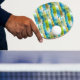 Raquette De Ping Pong Aquarelle vert abstrait, bleu