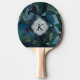 Raquette De Ping Pong Art abstrait turquoise décoré d'un monogramme de