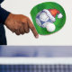 Raquette De Ping Pong Bal de soccer bleu et blanc sur vert