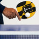 Ping Pong Paddle avec le drapeau de la ville de Baltimore, Maryland; drapeau noir et jaune avec une illustration du monument de bataille
