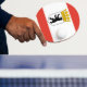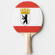 Ping pong paddle avec variante du drapeau de Berlin, drapeau d'état avec bandes horizontales de rouge et blanc, avec une illustration d'un ours noir à l'intérieur d'un bouclier avec une couronne