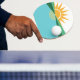Ping Pong Paddle avec un design avec le drapeau de Coral Springs, Floride. Un drapeau blanc, vert et bleu avec un soleil levant jaune