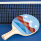 Ping Pong Paddle avec un design avec le drapeau de Peoria, Arizona. Un drapeau bleu, marron et blanc avec des sommets et trois étoiles