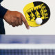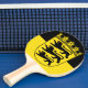 Pagaie de ping pong avec drapeau variante du Bade-Wurtemberg; conception avec deux bandes horizontales de noir et jaune (or) et emblème avec bouclier avec trois lions noirs au centre
