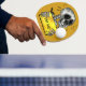 Drôle crâne souriant tenant une pancarte avec un texte personnalisé disant "frapper moi"