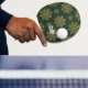 Raquette De Ping Pong Green Leather Tooled with Gold Snowflakes Initials