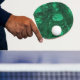 Cette pagaie de ping-pong dispose d'une belle photo en pierre de taille qui capture des couleurs tourbées vertes et vives. Ce motif abstrait unique présente des nuances de vert clair et vert foncé formant des lignes ondulées, des nuages et des formes géométriques créés par la nature.