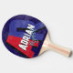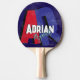 Chic ping-pong-racket personnalisé avec son nom en polices cool, avec de grandes lettres initiales rouges et bleues surdimensionnées avec ombre sur un arrière - plan bleu foncé... design moderne monogrammed, personnalisé avec le nom du joueur élégant...